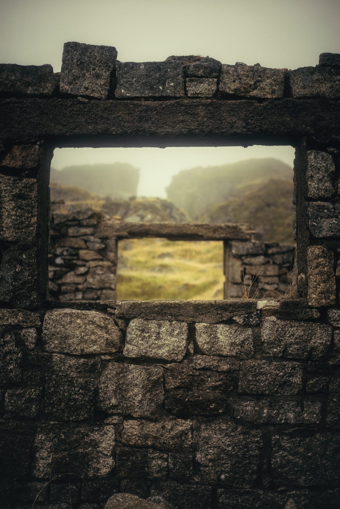 The mist was thick and the drop into both quarry pits is rather treacherous, so carefully wandering is required.