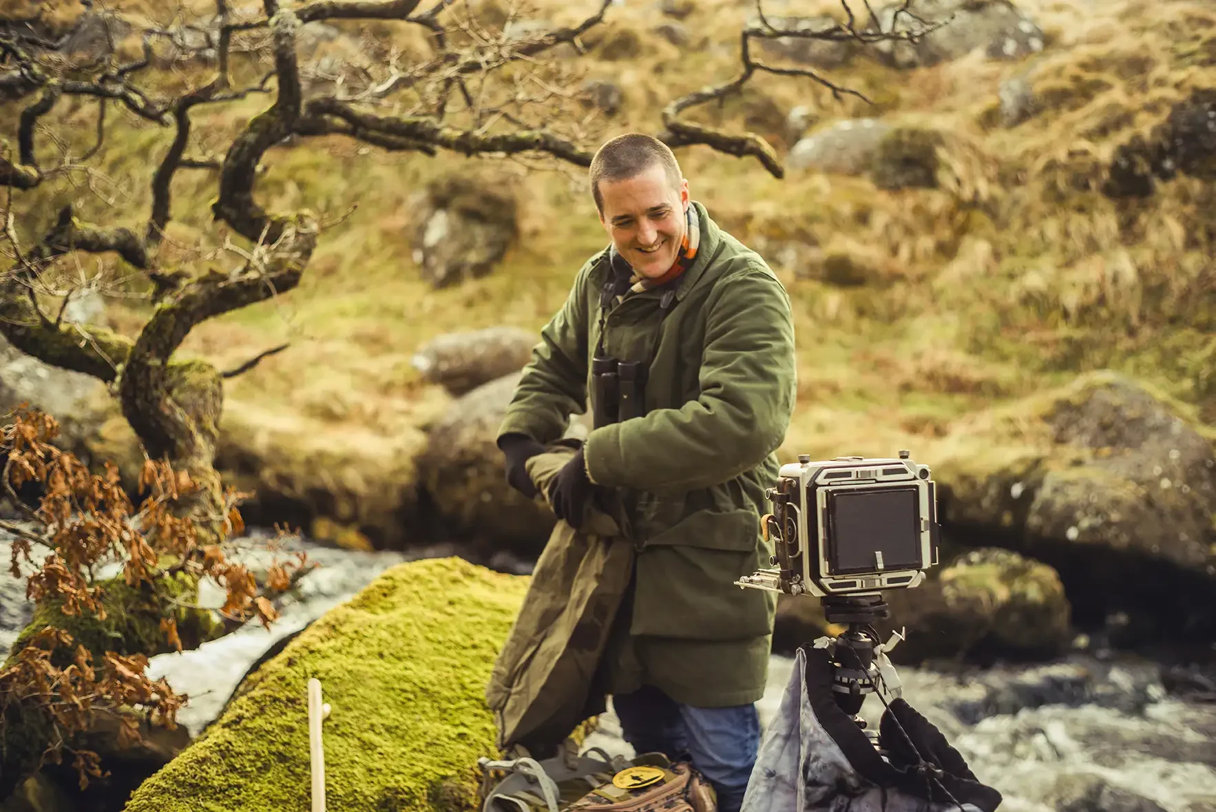 At that time I had become randomly obsessed with my MPP Large Format Field Film Camera (an accidental purchase, a long story, remind me to tell you some time in the future) I wanted to take some portraits of people I knew who did stuff on and around Dartmoor, so I asked if George would be willing to be a victim of this latest rather unthought through idea 😍